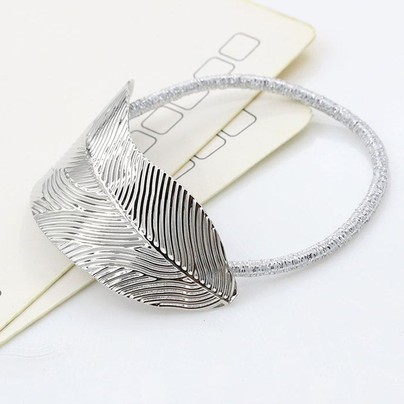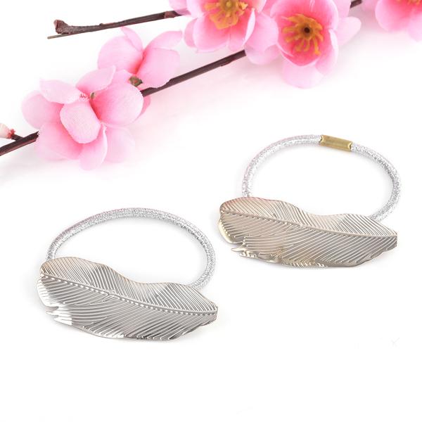 Un élastique en mousse tout doux, recouvert d'une feuille ou plume délicate et arrondie : vos cheveux sont coiffés d'une touche romantique.