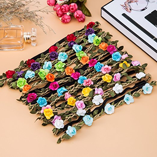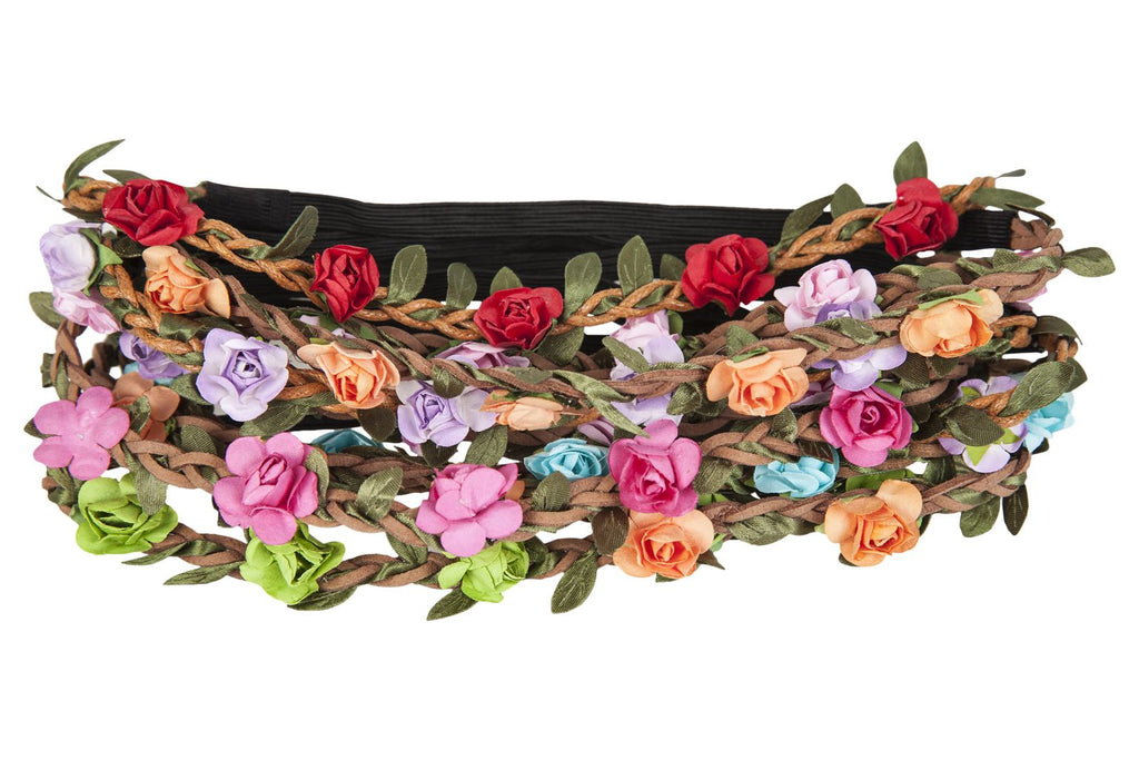 Composition de petites fleurs en tissu, et tresse en suédine; la partie arrière est en matière élastique, pour une meilleure tenue dans vos cheveux.