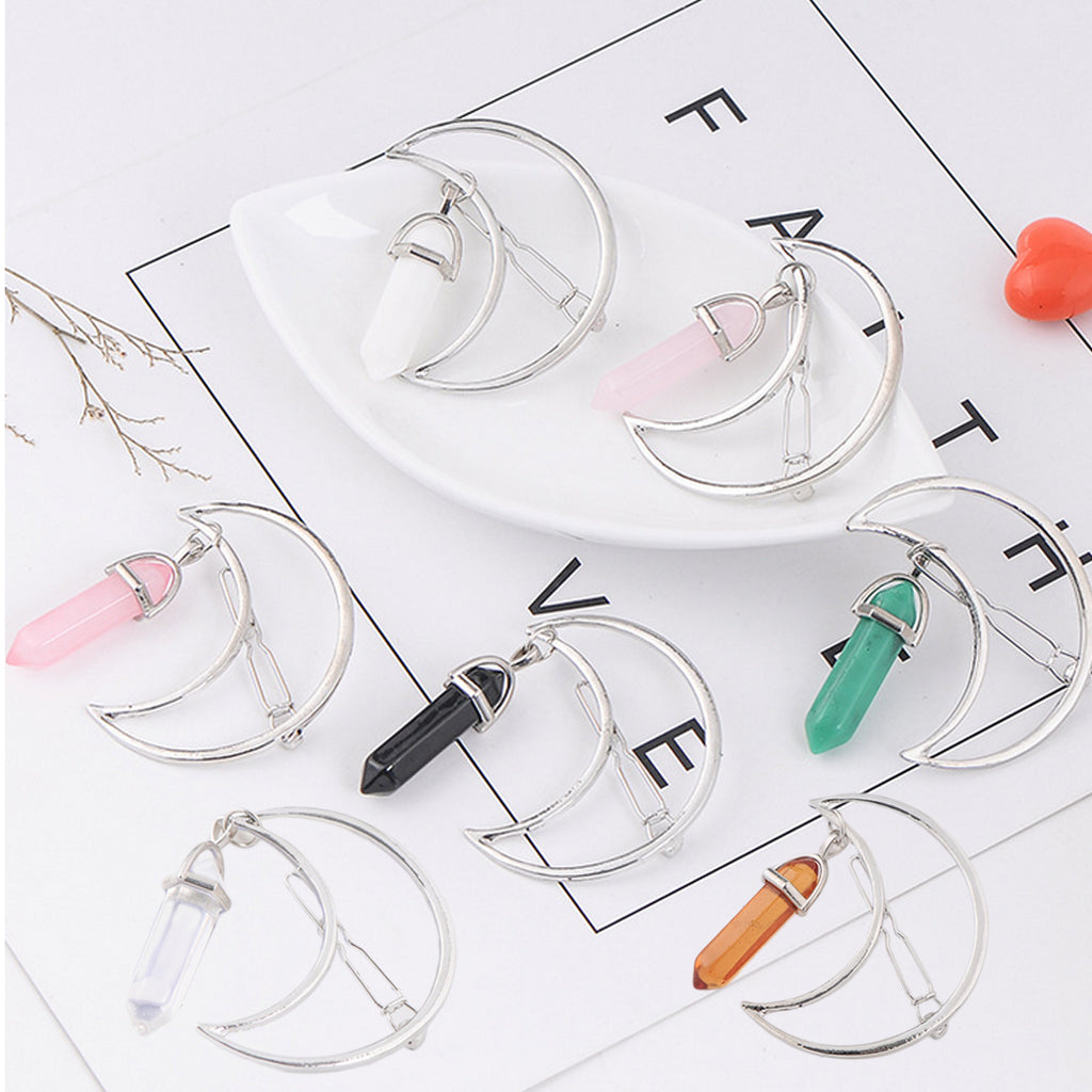 Une touche de magie dans vos cheveux avec cette lune argenté et sa pierre pendante en résine de couleur noire onyx