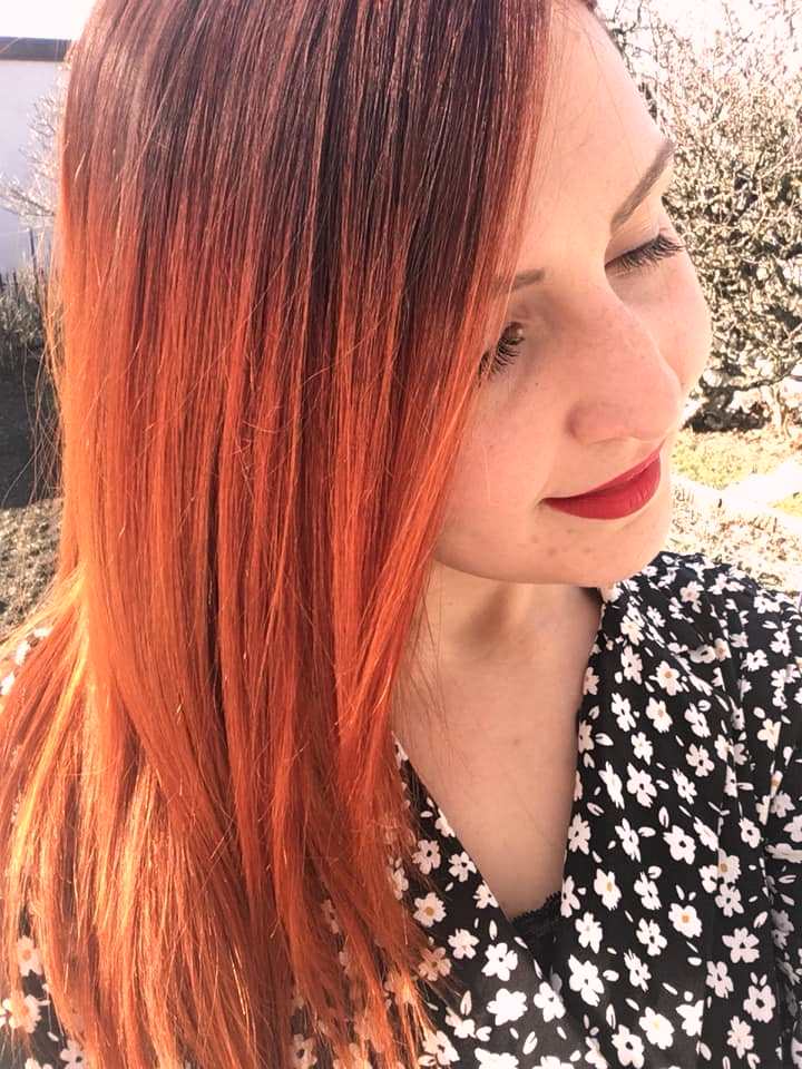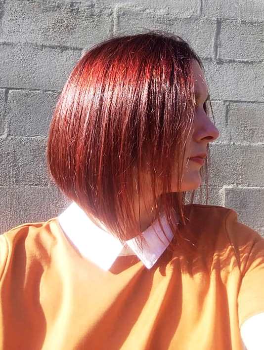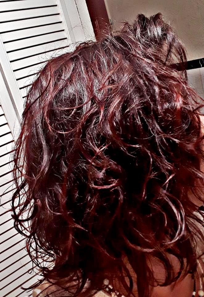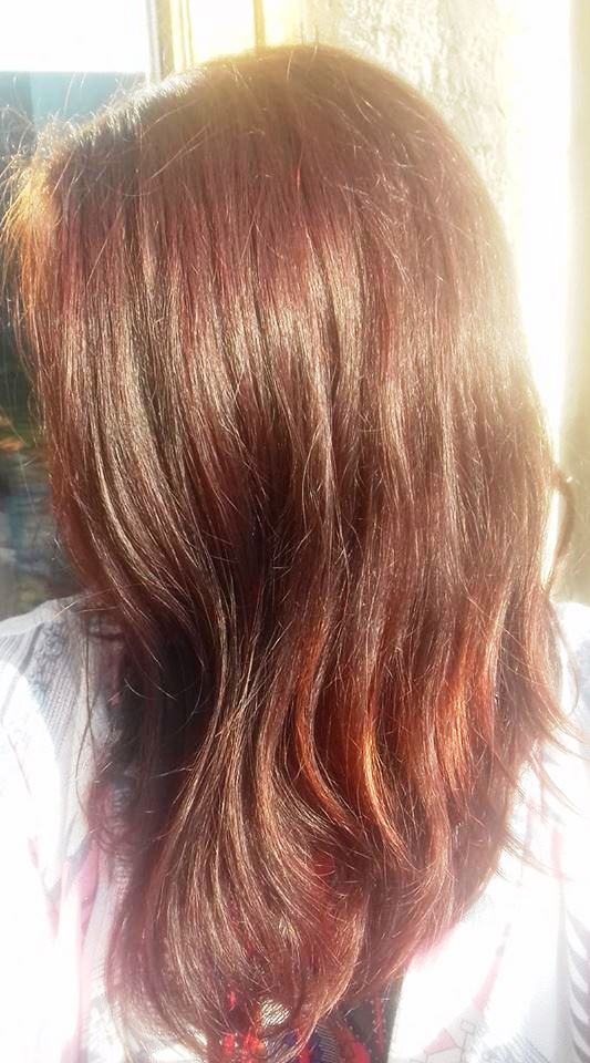 fait briller les cheveux avec de beaux reflets acajou / rouges