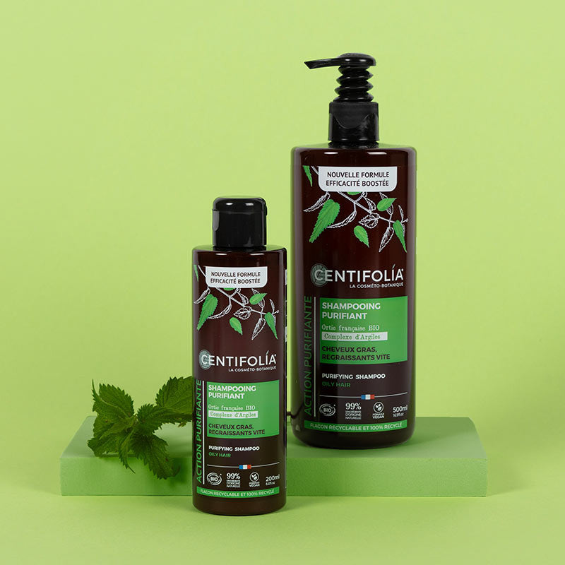 Adapté aux cheveux gras, regraissant vite le shampoing purifiant Centifolia lave vos cheveux en douceur sans les agresser grâce à sa formule bio ultra-douce et sans sulfate*.