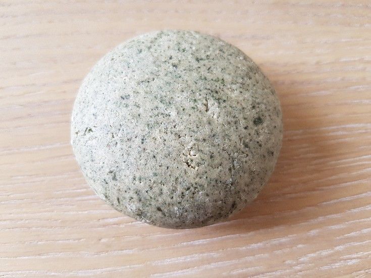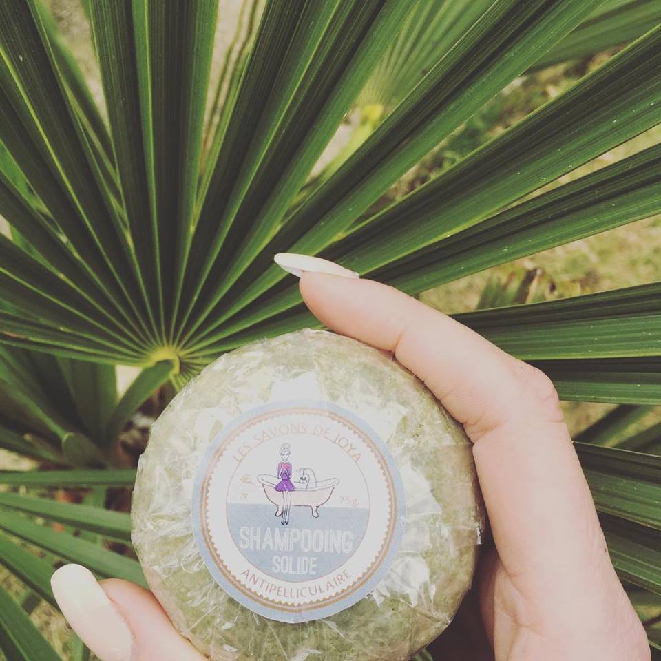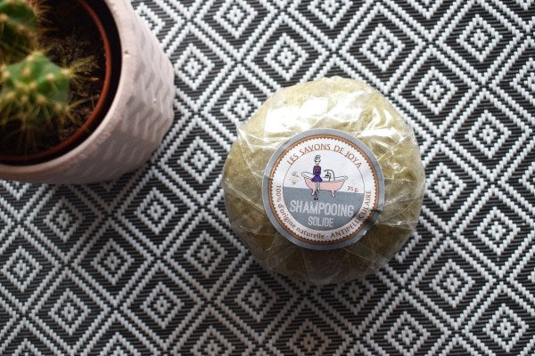 Sa forme de galet permet une prise en main facile et de l'appliquer directement sur les cheveux mouillés pour faire apparaitre une mousse délicate. L'emballage utilisé est en papier transparent compostable et labellisé AB.
