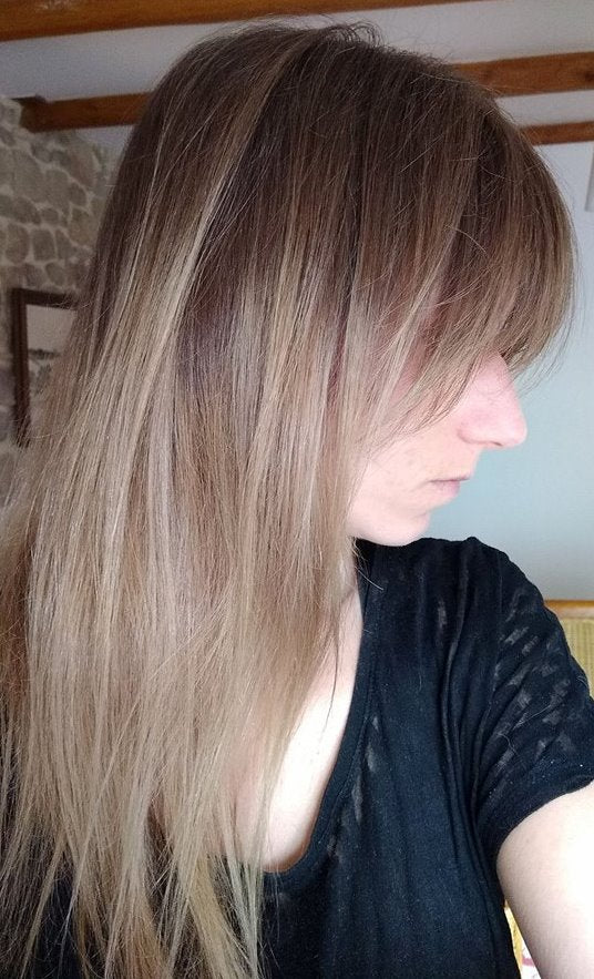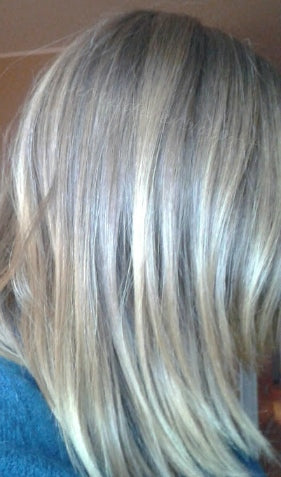 Ci-dessous, le résultat du Blond Froid mélangé à la coloration Noisette (moitié / moitié) afin de "déjaunir" un blond doré :