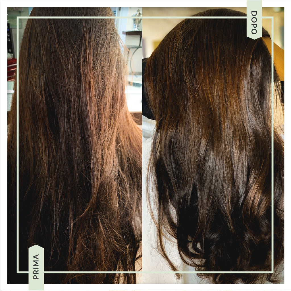 Le diamètre du cheveu est légèrement augmenté, la chevelure montre plus de volume et est mieux protégée contre les agressions extérieures.
