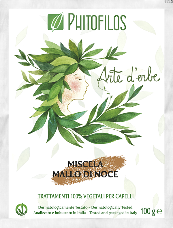 Phitofilos, miscela mallo di noce, coloration châtain, marron, chaud, chocolat, couvre cheveux blancs et gris, henné neutre, brou de noix, indigo, Redonne brillance aux cheveux châtains , soin capillaire et coloration bio, vegan, naturelle, plantes, boutique henné, éclaircir, éclaircissement, gaine, nourrit, brun, marron