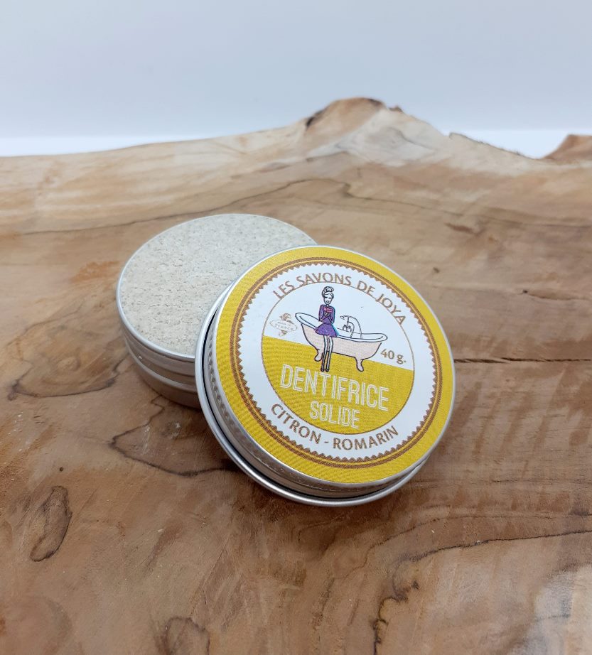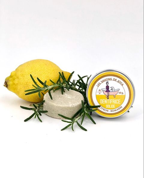 Ce dentifrice solide Citron-Romarin est économique et simple d'utilisation pour une haleine fraîche.