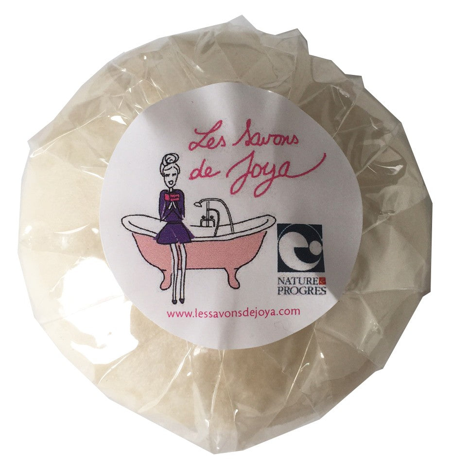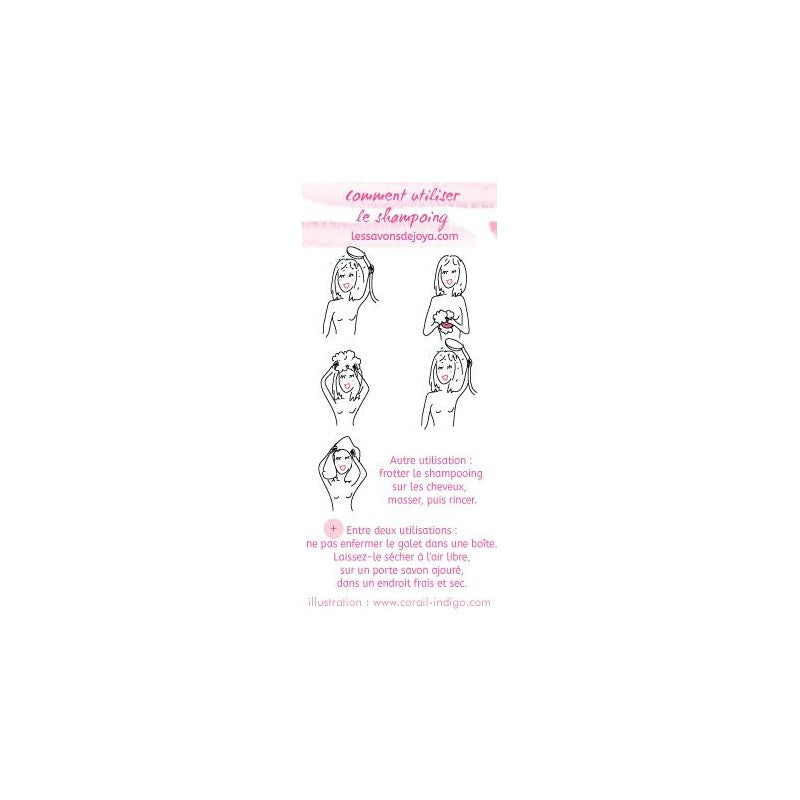 Ce shampoing grâce à sa forme de galet, permet une prise en main facile et de l'appliquer directement sur les cheveux mouillés pour faire apparaître une mousse délicate. L'emballage utilisé est en papier transparent compostable et labellisé AB.