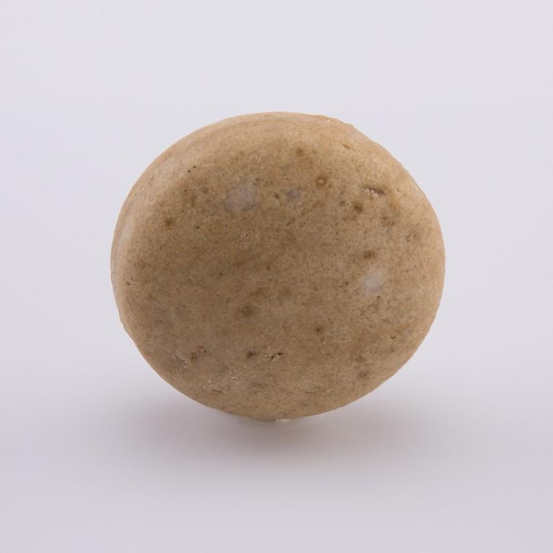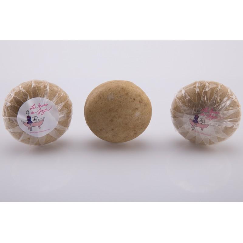 Shampoing solide pour cheveux frisés, crépus, indisciplinés sans huiles essentielles, en forme de galet.