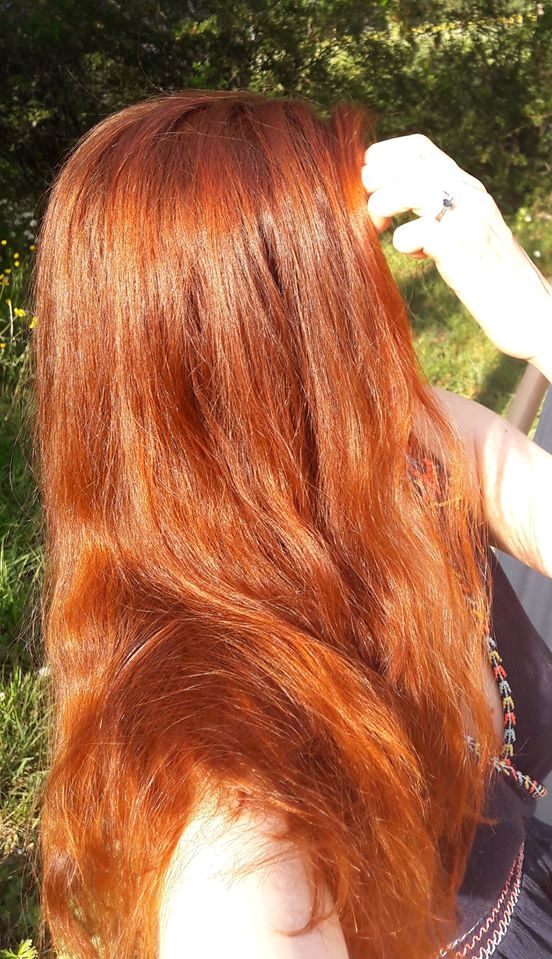 Résultat : Cuivré vif sur les cheveux clairs et acajou sur les bases plus foncées