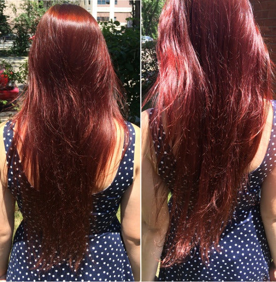 Il donne d'intenses nuances cuivrés acajou, à bordeaux, selon la couleur de base.