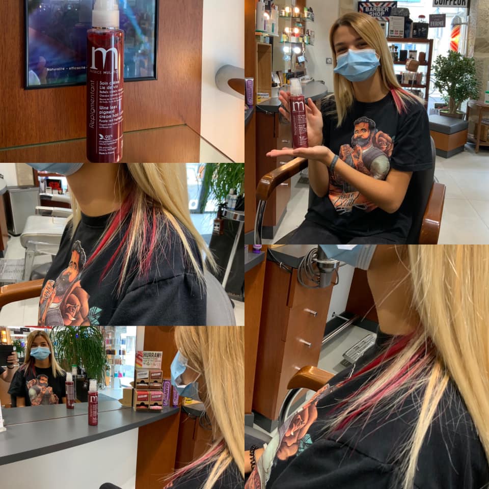 - Sur cheveux naturels, le soin colorant repigmentant Lie de Vin apporte de très beaux reflets entre le rouge et le violet, c'est-à-dire un rouge froid, framboise.