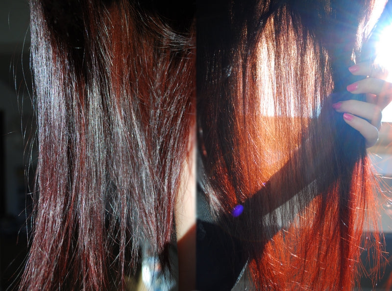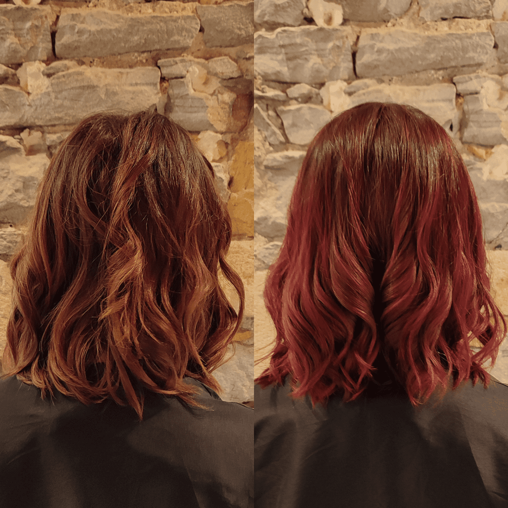 - Voici des photos montrant le résultat d'un shampoing Mulato Rouge Venise + soin repigmentant :