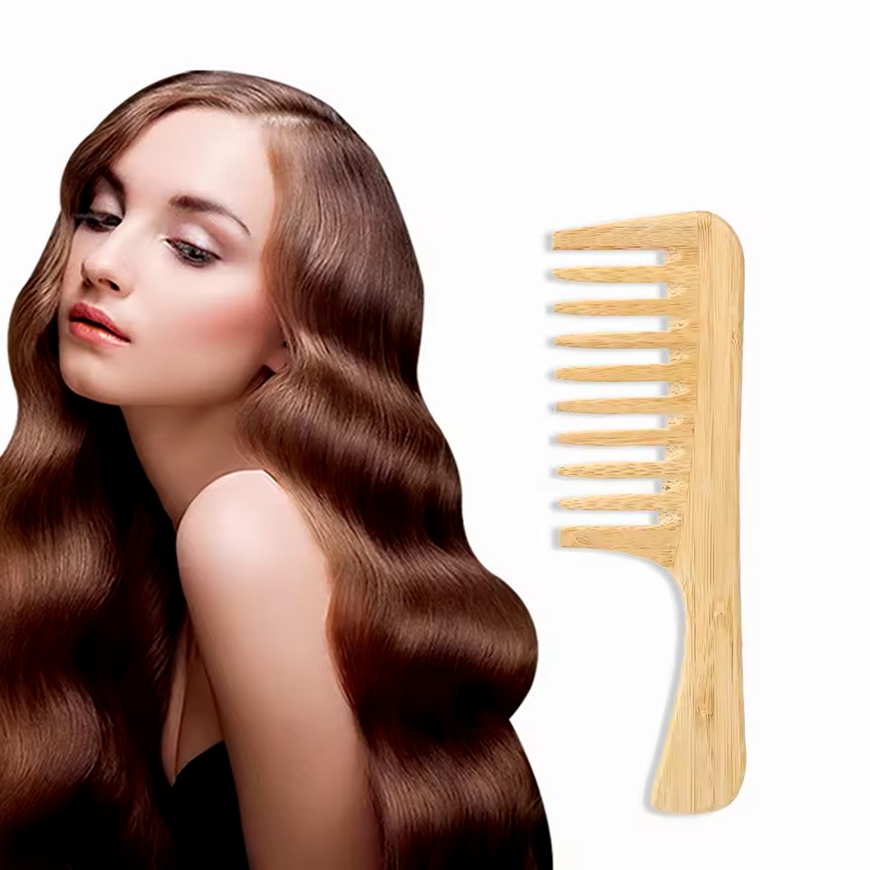 Texture du bois lisse pour faciliter le démêlage des cheveux épais, bouclés, avec volume.