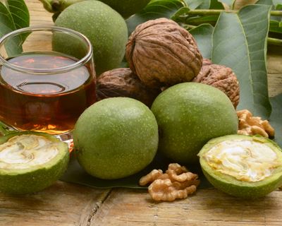 Le brou de noix est issu de l'enveloppe charnue entourant la coque de la noix.