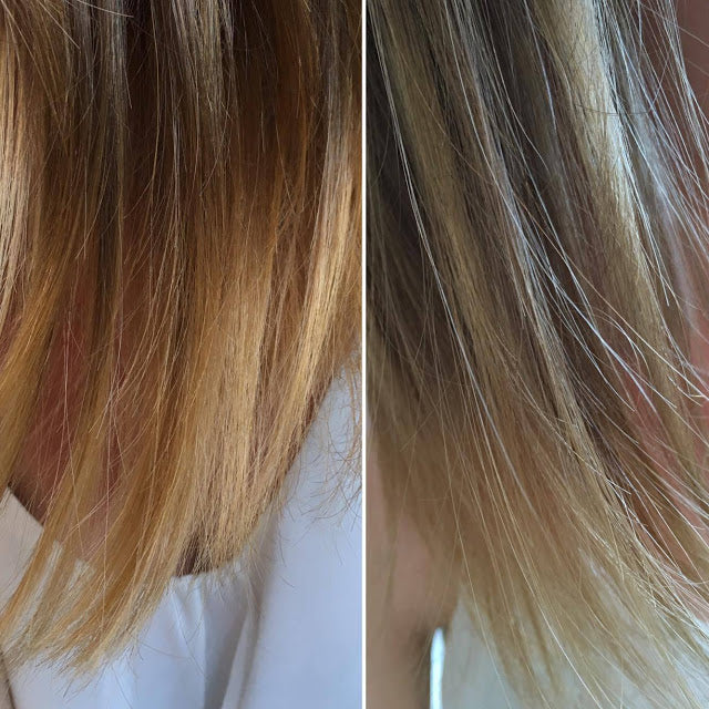 - Apporte des reflets cendrés lumineux aux cheveux gris, blancs, poivre et sel.