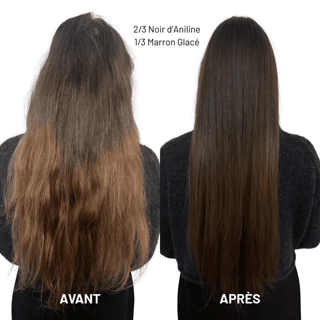 - Sur cheveux naturels, le soin colorant repigmentant Noir d'Aniline donne de la profondeur ou fonce la couleur.