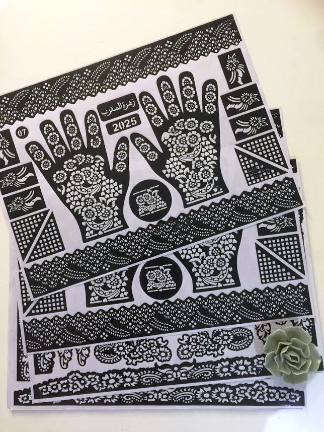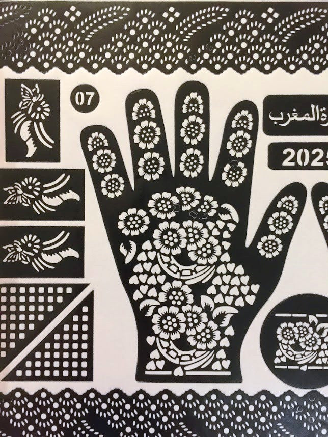 Grâce à cette grande planche de pochoirs aux jolis motifs floraux, à vous les tatouages orientaux réussis et sans bavures !