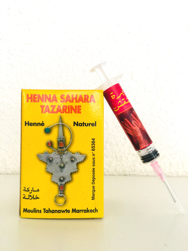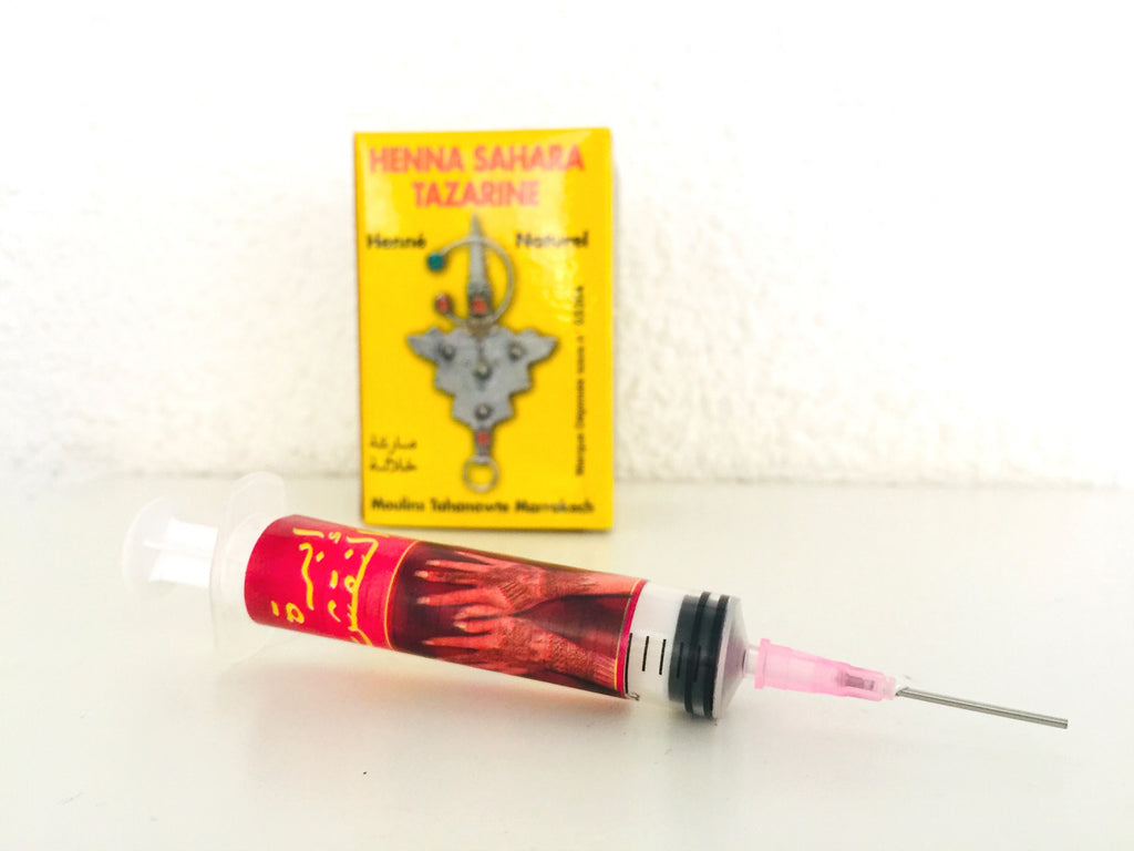 Cette seringue permet l'application du henné sur la peau, en aucun cas l'aiguille ne doit pénétrer la peau !