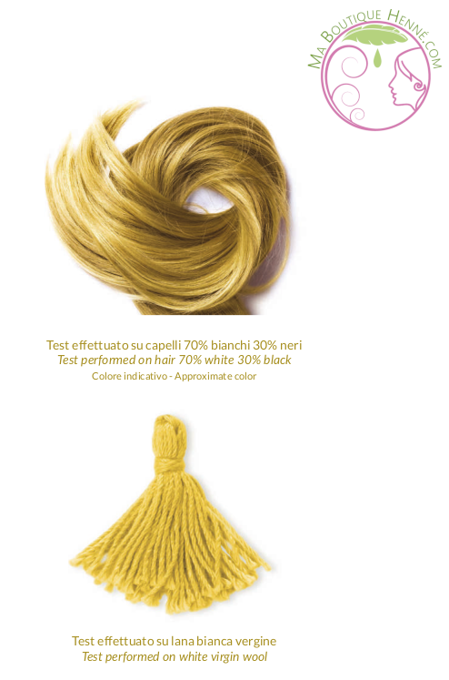 - Les cheveux blancs : le "Blond Doré" couvre les cheveux blancs, mais il est conseillé de l'associer à d'autres poudres couvrantes : ainsi, la poudre d'Epinette-Vinette permet de mieux couvrir les cheveux blancs et de renforcer les reflets blonds froids.