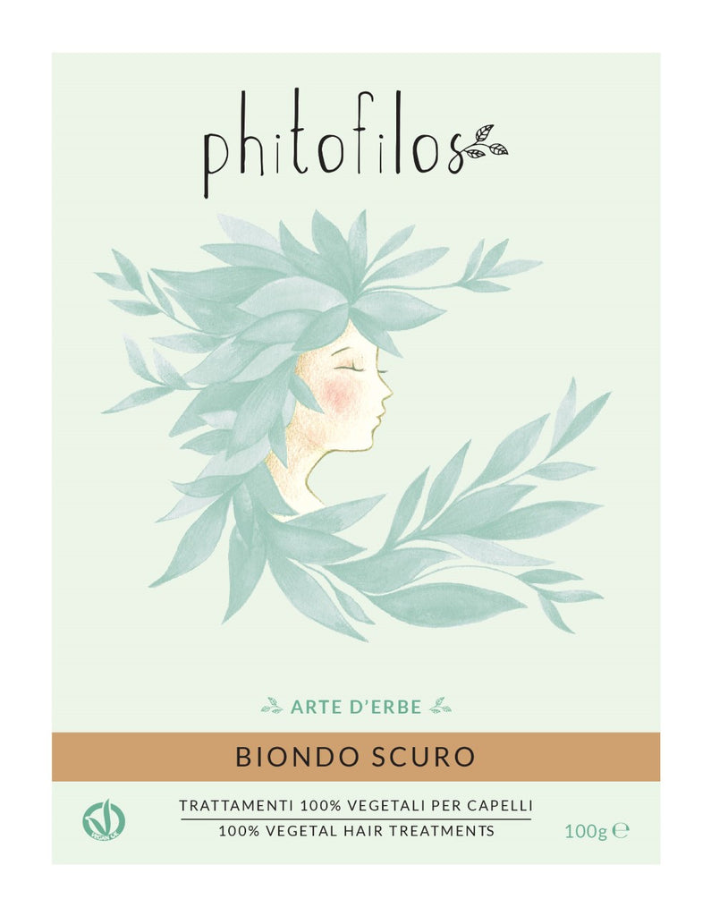 Phitofilos, biondo scuro, freddo, blond froid, foncé, châtain, noisette, brun, nordique, couvre cheveux blancs et gris, indigo, camomille, noix, brou, noyer, henné naturel. coloration blond-doré, brillance aux cheveux châtains, soin capillaire et coloration bio, vegan, neutraliser roux cuivré, henné, gaine, nourrit