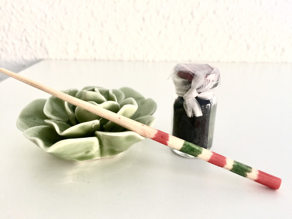Le Khôl en poudre s'utilise grâce à son flacon et à son bâton en bois.